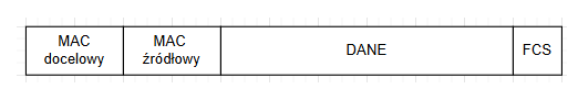 Ramka taka (już po odfiltrowaniu) składa się z adresu MAC docelowego, źródłowego i danych. Koncepcyjnie przypomina to list (dane) w kopercie (adres celu i źródła) wysłanej pocztą (sieć LAN). Poniżej widok ramki Ethernet: