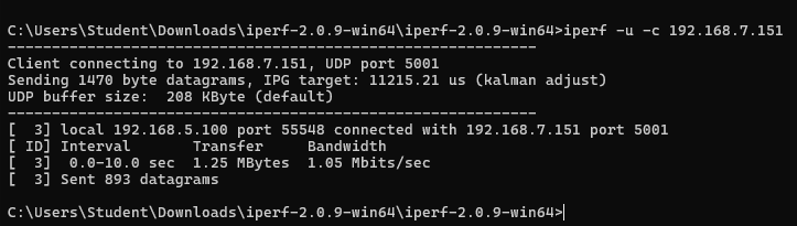 # Na maszynie klienta uruchamiamy test w kierunku serwera