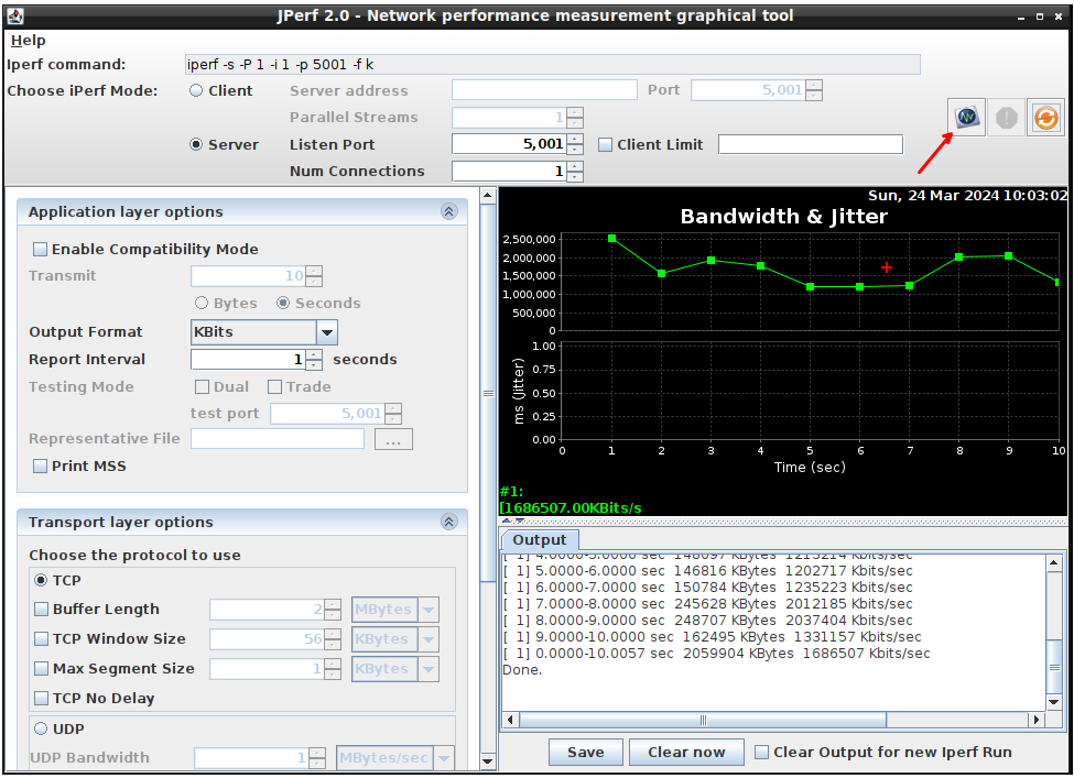 Nakładka jperf na iperf (Linux)